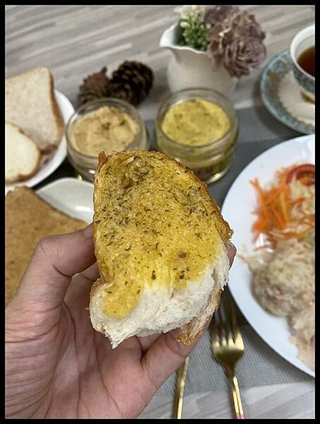 烤過的蒜香吐司洋香草葉末會變的比較明顯
