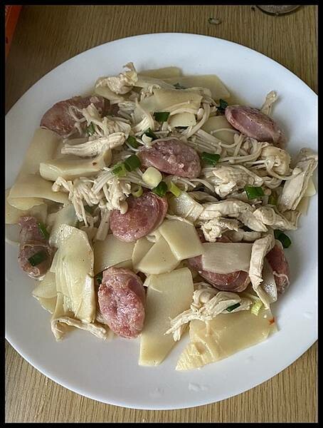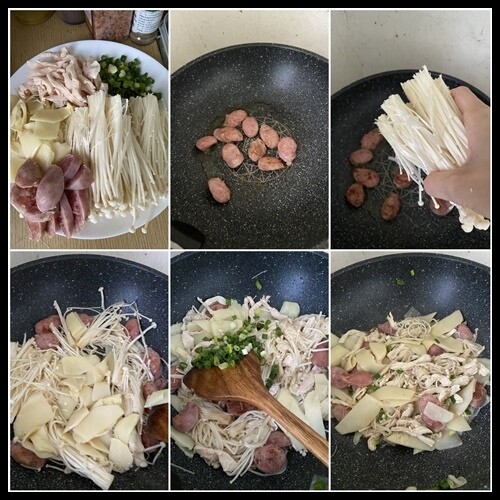 拿來跟當季的竹筍金針菇一起炒