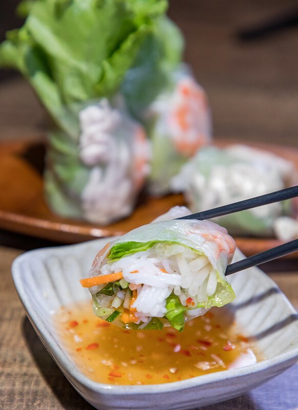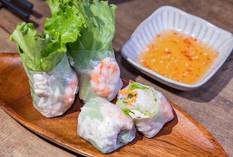 黏筷的生春捲皮有著討喜的前奏口感,裡面豆芽、米線、黃瓜、紅蘿蔔、生菜、鮮蝦,雞絲越著每一口的咀嚼呈現出不同層次的「爽脆」,分不清是誰提供的水嫩和微爆汁口感,也在拌隨著魚露醬汁在嘴裡擦出不一樣的甜味,不管是口感還是味道,都足以排進我吃過最喜歡的生春捲前三位。