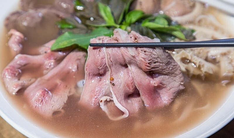 除了清爽鮮甜的湯頭頗得我心外,這裡的生牛肉也非常棒,約莫是3-5成的熟度,入口保有一、兩口的微咬勁,牛肉的鮮甜和湯頭的鮮甜共鳴度非常高,感覺這生牛肉泡在湯里一起煮過似的,好吃的亂七八糟!!!