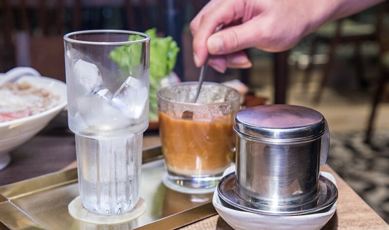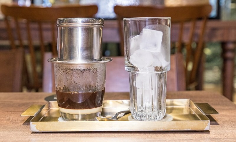 滴完後先用湯匙攪均了,點的是冰咖啡,再倒入放有冰塊的玻離杯內就可以喝了。至於,好不好喝?除了略帶討喜著巧克力香頗特別外,倒是沒有太多感覺...然後,依稀記得以前喝的越南咖啡有炭燒苦味,這杯倒是完全沒有。