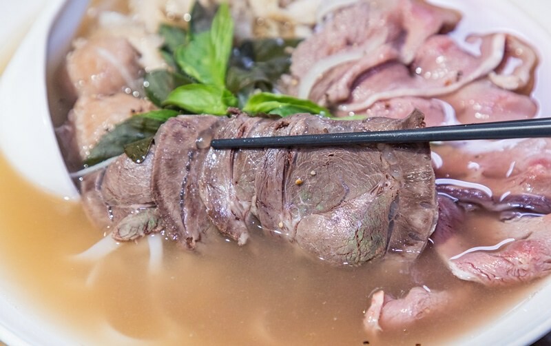 越是火車頭河粉,我幾乎沒有思索就點了這道店家的招牌,端上來的擺盤和拍完的畫面,真的挺美的,說是我吃過、見過最美的越式河粉應該也不為過XD。