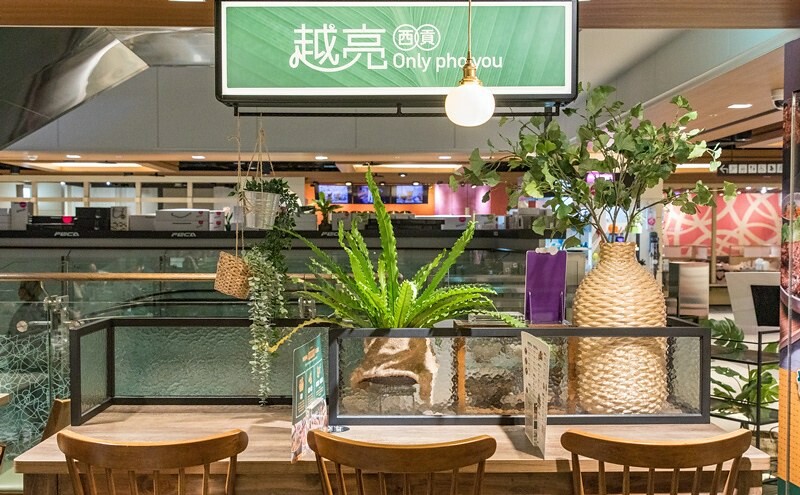 佈置上以木桌和南洋風植物為主,疫情期間雖開放內用,桌上也都有透明的壓克力板防護著。就友人的說法,疫情前最少都要七八成的滿客率,對照如今小腳兩三隻,台灣餐飲真的是很辛苦。