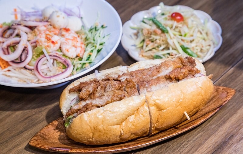 老實說我並沒有特別喜歡越式法包,但看隔壁桌點的,好像很好拍,於是沒經過友人同意就幫他點了一份.....,端上桌果然視覺很澎湃,但和我在多倫多看到的越式法包很不一樣,尤其是上面的豬排,感覺札實豐盛許多。