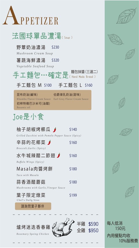 只要點一份主餐現在就可以用優惠價88元(原價139元),升級套餐有有主廚例湯1碗/麵包1顆/飲料1杯,個人建議加點套餐,這樣不只吃好也可以吃飽~