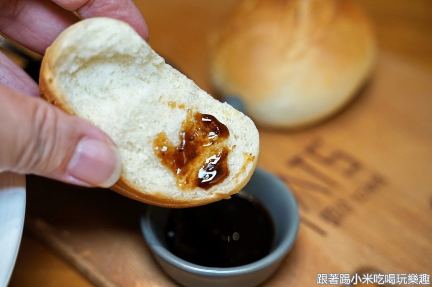 麵包也是主廚自己手工製作,提醒上桌時趁熱熱吃又酥又有軟綿的麵包香