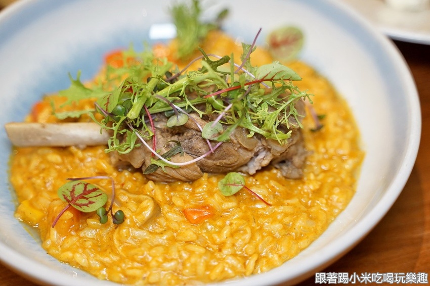 大家不妨可以棒棒腿肉與燉飯放在嘴巴裡面融合兩者的風味嚐看看唷。
