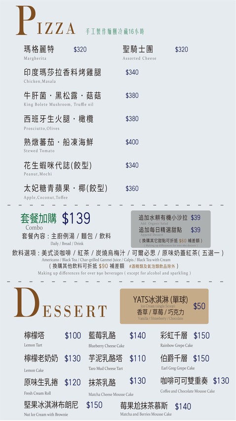 在關埔區有著高水準義式料理的葉子 YATS 開放內用囉!