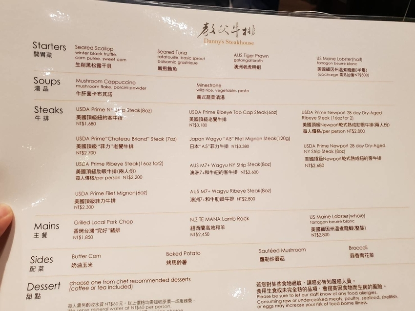 他推薦了我美國頂級老饕牛排$3180+一成。說是頭蓋骨那塊牛肉!