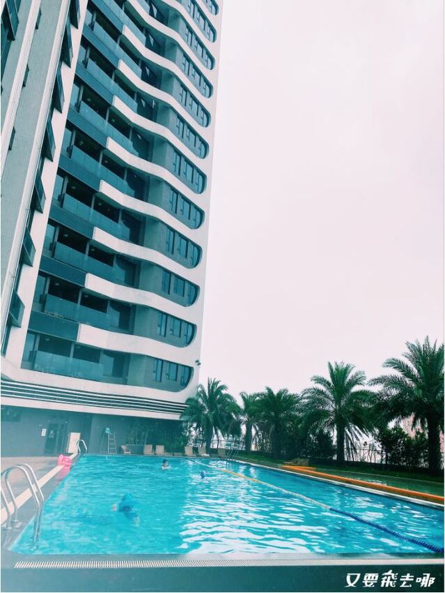 當時的戶外泳池真的好多~小孩!許多爸爸媽媽都帶小朋友來這邊消暑,除了飯店設施外面到哪個景點都要開車,只能乖乖的在這等著進房啦。隔天早上和JEFFY又來看了一次泳池,可惜天氣不作美,拍起來的照片沒那麼漂亮😭
