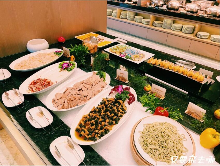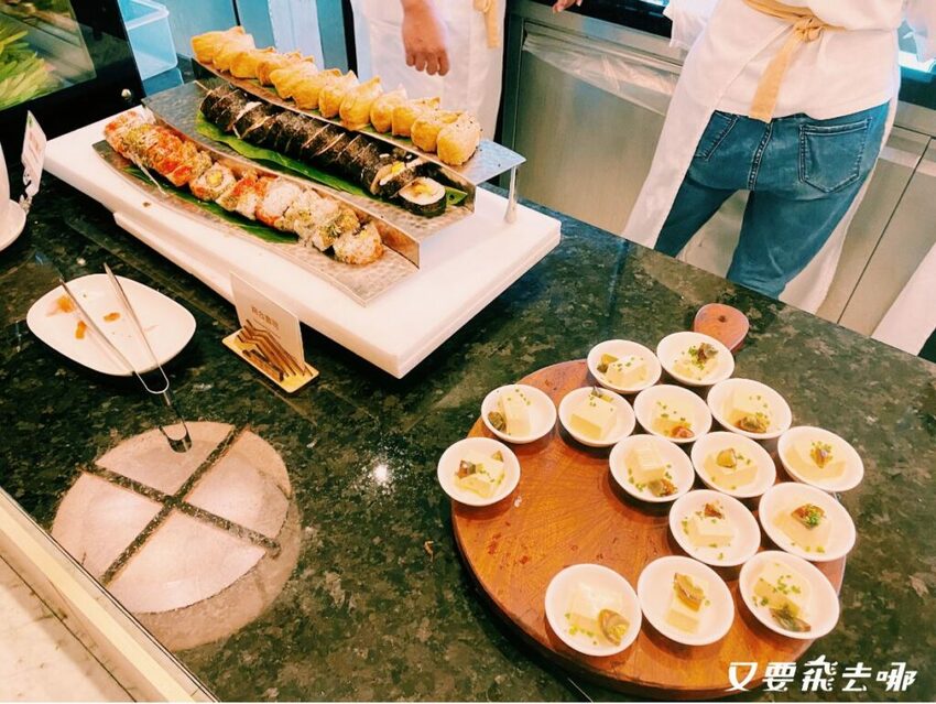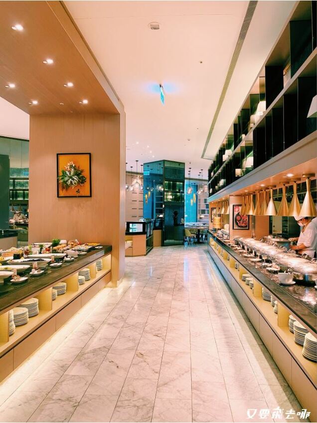 我們的晚餐跟早餐都是在明廚百匯,是中西合併的自助餐大總匯,跟大廳一樣在一樓。餐點樣式超級多,雙手都快追不上嘴巴想吃的速度了,吃完甜的吃鹹的,吃完鹹的再吃甜的,胃跟無底洞一樣一直塞🤣除了明廚百匯,飯店上方也有其他餐廳選擇,有懷石料理、日式料理、鐵板燒、歐風下午茶,在這邊住上好幾天都不會膩吧❤️(如果我口袋跟胃一樣深的話哈哈)