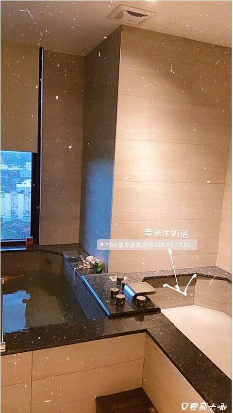 房間的溫泉真的好特別,是兩種溫泉池~😍左邊是宜蘭羅東有名的碳酸氫鈉溫泉,右邊是奈米牛奶泡泡浴。碳酸氫鈉是宜蘭溫泉中的極品,富含鈉、鎂、鈣、鉀、碳酸離 子等礦物質成分,又稱為天然的化妝水。右邊的奈米泡泡浴,按下按鈕,會慢慢地跑出白色微泡,慢慢的池子就變成米白色。來自水分子對撞衝擊,產生每分鐘高達十二億萬顆超微粒氣泡,摸起來滑順的像牛奶一樣。