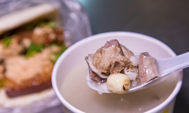 60元的綜合四神湯,表面看起來小貴,但往下一撈食材還真的挺多的,小腸、粉腸、豬肚、小肚,蓮子、尤其是意仁非常的多。湯頭方面算是偏清爽,雖然看起來湯頭有一點顏色,但說實說個人比較偏好像大稻程「妙口四神湯」又或是同在「坤山四神湯」那種略濃又口味偏重的四神湯,但我不得不說這碗四神湯裡的各種食材,處理的極好,而且都非常好吃,尤其是軟嫩微化的粉腸和小肚邊上的那塊有如嘴邊肉的軟肉,好吃的亂七八糟。
