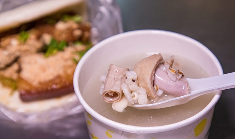 也不曉得誰規訂的(王偉忠上身),賣刈包十有八九兼賣四神湯,獨賣這兩味的那也是所在多有。四神湯有小腸、小肚、粉腸、豬肚或是綜合,通常我也都會點綜合,尤其是第一次。