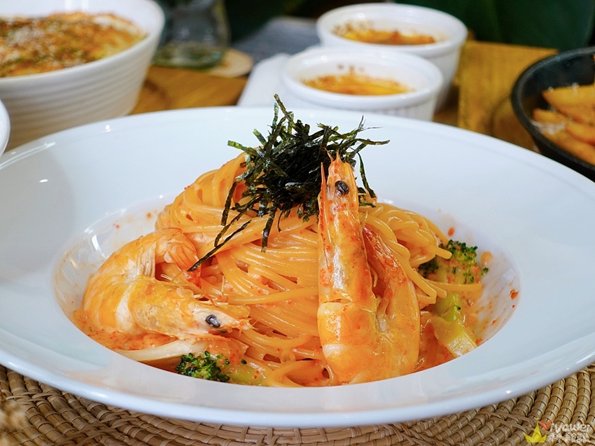 ▲濃郁的奶油白醬搭配的明太子和蝦卵~還加了花椰菜和杏鮑菇~上方則是用海苔絲點綴!他們的義大利麵醬汁收得比較剛好~如果是外帶餐點~義大利麵的醬汁會再給多一點唷~