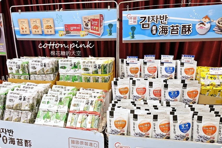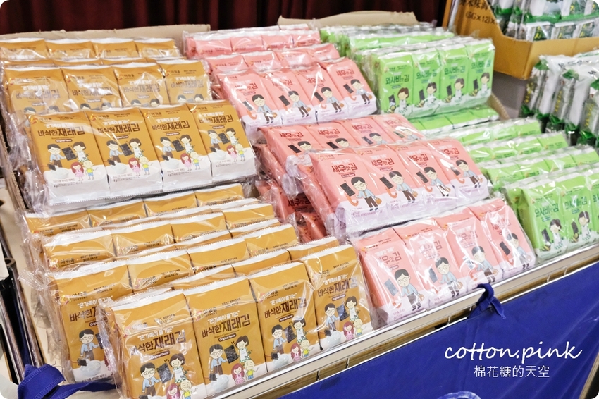 大家最喜歡的韓國海苔現場也有超多品牌可以挑選,雖然現場不能試吃,但大家可以各買一點回去嚐嚐鮮,濃濃麻油香氣會讓人人一片接一片停不下來的啦。
