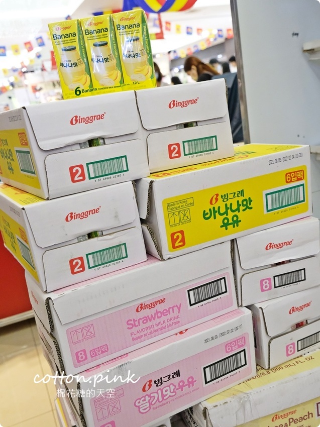 到韓國一定要喝一杯的香蕉牛奶當然也整箱整箱來到現場,今年因為海運延遲很多進口商品數量都不多,大家一定要把握機會來現場補貨~一解思念韓國個嘴饞。最近韓國很紅的飲料包這裡也買得到~只要加上冰塊就是一杯好喝美味唷!