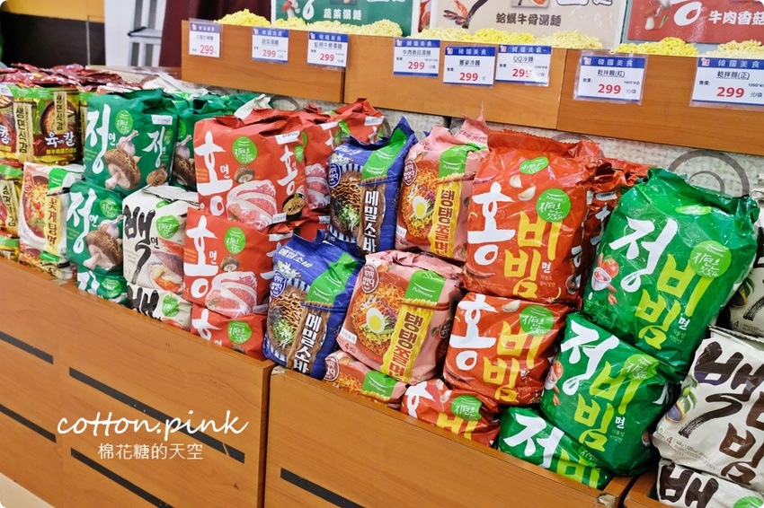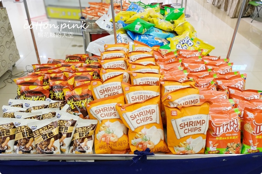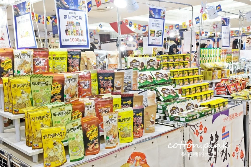 看看這一整排的韓國零食是不是每一種都想要試試看?!各種口味的杏仁果~快來現場收集,任選四包只要1000元~趁現在來補貨最划算,還有香濃花生可可風味年糕派、常常在韓劇出現的午餐肉、烘烤洋芋片……通通都要帶回家,每一包都是追劇良伴阿!
