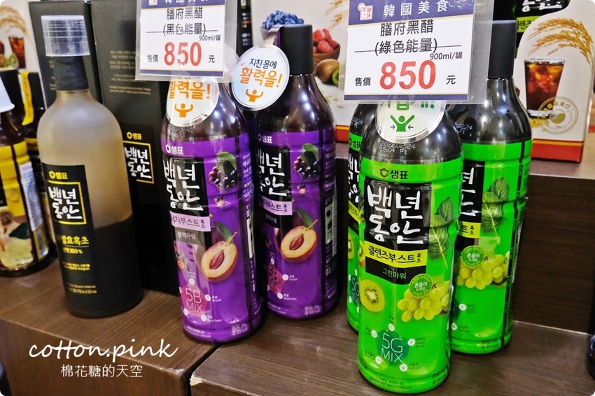 玄米黑醋都是花了三年的時間來釀造的,含有豐富的益生菌喔!帶回家之後可以直接加冰塊或是加點氣泡水就是好喝又健康的飲料,現場全面特價~就算是比較高單價的綠色能量口味和黑色能量口味通通都是三罐1500元。
