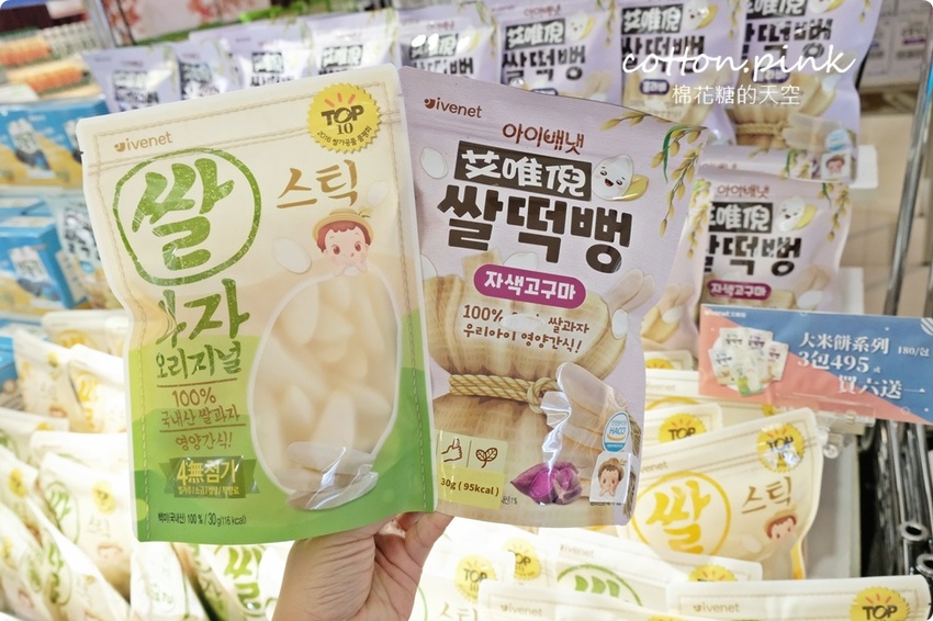 韓國進口的嬰兒副食品非常有名,寶寶出生6個月以上就可以來這兒挑選喔!多種口味的大米餅原價一包要180元現在3包只要495元!包裝上都有夾鏈袋保存更方便~
