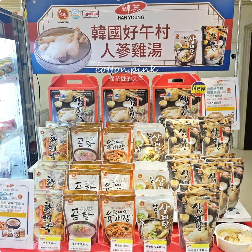 提到韓國料理包大家會先想到的應該就是人蔘雞吧!打開裡面有一整隻韓國小春雞,肚子裡還有綿綿的米飯喔!韓國原汁原味在家裡簡單加熱就可以享受~現場超多選擇啦!