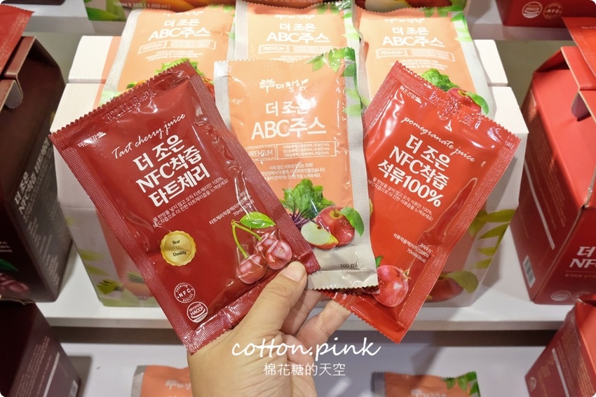 現場還有少見的酸櫻桃汁和韓國明星都在喝的ABC冷壓果汁,酸櫻桃只是學名喝起來其實跟石榴汁差不多酸度~有豐富的維他命C,ABC冷壓果汁裡面包含蘋果、甜菜根、紅蘿蔔~一包就可以吃到外食族很難補充的蔬菜水果!難怪在韓國引起風潮阿~