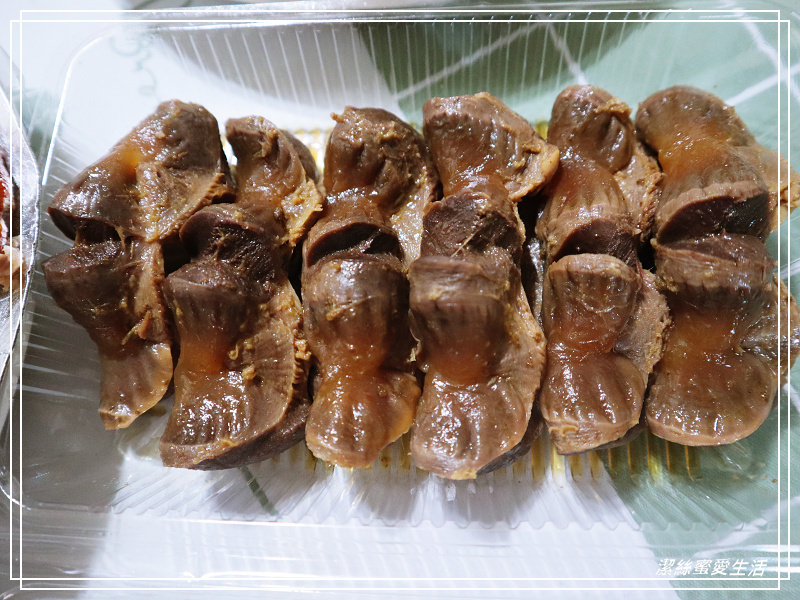 鴨胗一盒100元有六顆,是冷滷型式,直接單吃覺得也是稍鹹一些,但吃起來不會硬,不會難咬或吞下去像要噎到XD,還不錯。