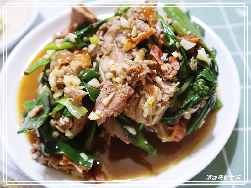 炒鴨架的部份,加了大量九層塔和蔥段蒜末的香氣非常棒~~單吃會覺得略鹹,但很下飯😆😆,或是配個啤酒也覺得很搭XD。