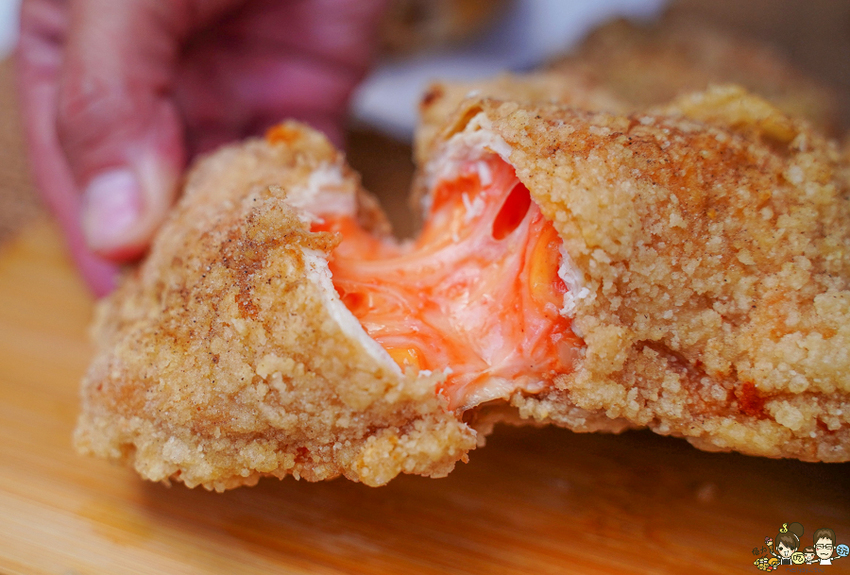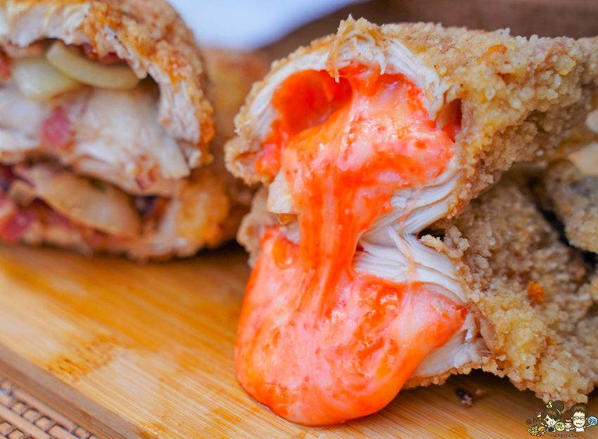 包入自家調配的紅絲帶起司,整個純手工包入雞排內