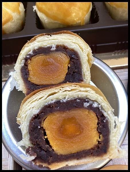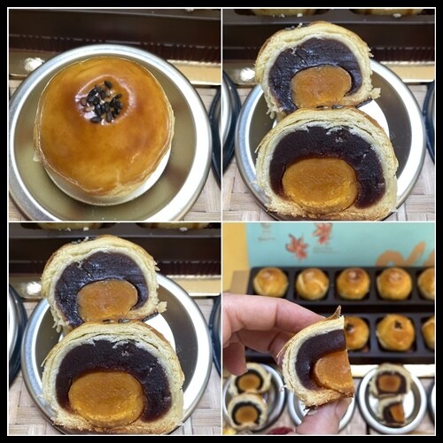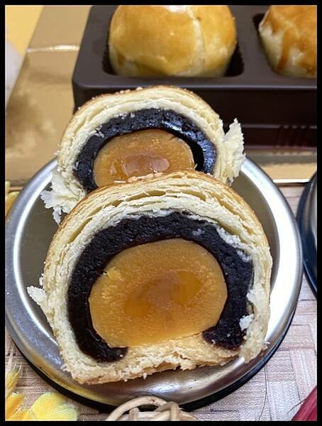外皮奶油的酥皮香、烏豆沙的甜感、鹹蛋黃的鹹感、鹹蛋黃的香氣