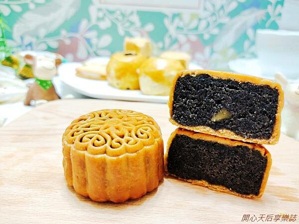 芝麻核桃,餅面有著古典花紋的小月餅,皮薄餡多,入口充滿芝麻香氣,沒有油耗味,吃得出芝麻微粒及香脆核桃,是少見的月餅口味,我一吃就愛上