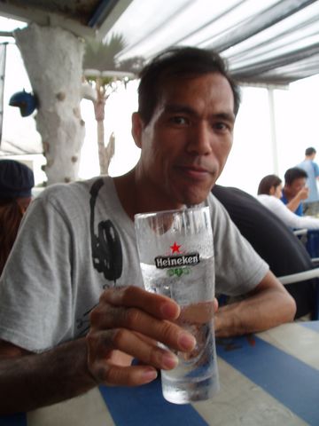 杯子是用海尼根裝白開水,這時大哥又想要跟大家「乾杯」厚搭啦