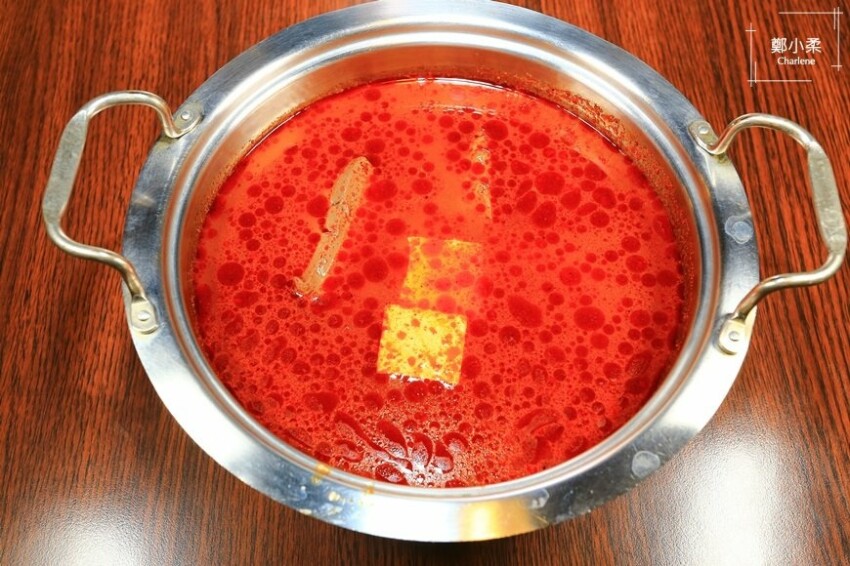 嗜辣的我選擇麻辣鍋,裡面有鴨血、豆腐,湯頭喝來麻香四溢,辛辣有勁。