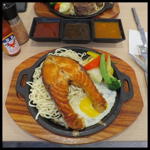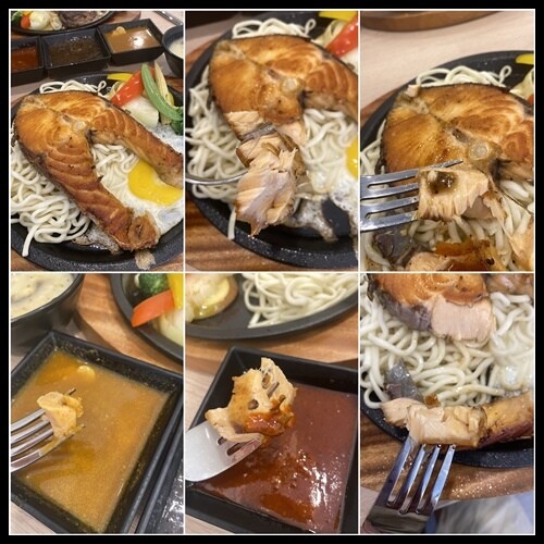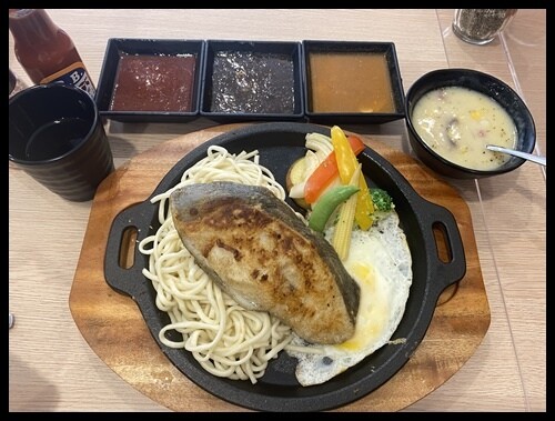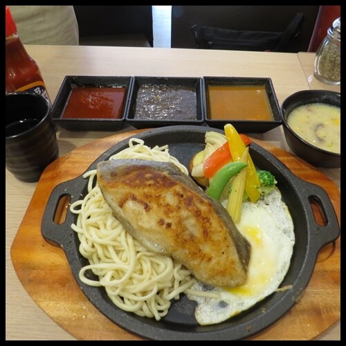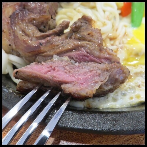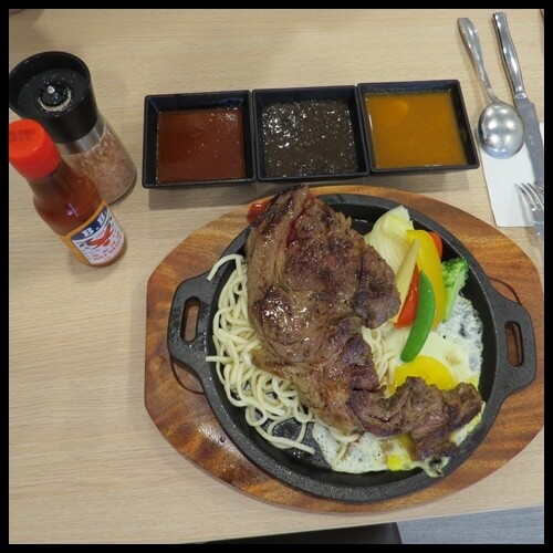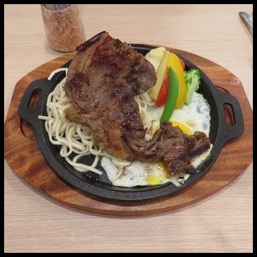 配上一旁的彈牙滑順的鐵板麵及半熟金黃蛋