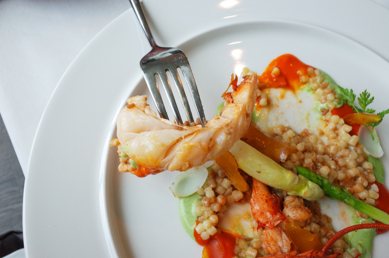 主餐有香煎波士頓龍蝦與台灣御牧牛肋眼兩種,
