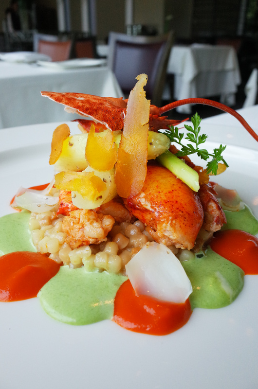 (奶油香煎波士頓龍蝦,烏魚子薩丁尼亞麵疙瘩與煙燻甜椒醬汁)