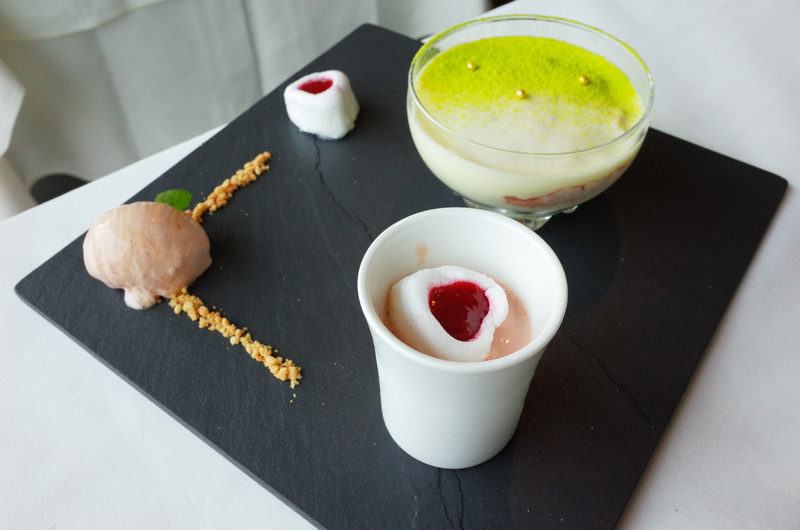 (紅心番石榴提拉米蘇,番石榴冰淇淋與蜂蜜脆餅)