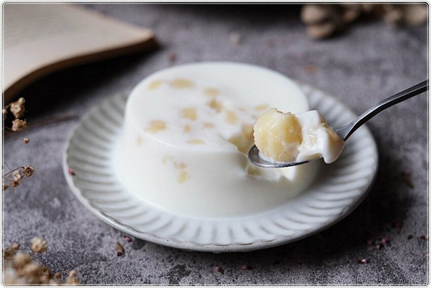 蓮子奶酪,你看看這奶酪中有著不少的蓮子,真材實料映在眼前。