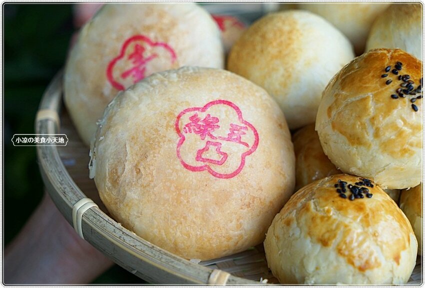 綠豆椪,葷素皆有、餅上會以素或綠豆凸做區分。真味上品家的綠豆椪跟市面上的綠豆椪色澤不一樣,這邊有烤得比較上色,在餅皮的酥度上也更加分。