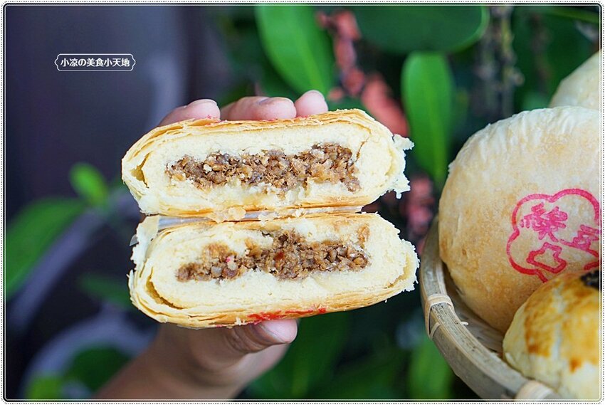 對切後的滷肉綠豆椪,肉香四溢迷人,加上3:7的肥瘦比例調製,再加入油蔥酥熬煮,難怪一切開那噴香的肉味讓人淪陷,以這樣的滷肉再包入綠豆餡中,更凸顯出滷肉綠豆椪甜甜鹹鹹的獨特口感,互相提味而不搶味。小建議,要吃時也可先放入平底鍋或電鍋以乾烘的方式再加入一下,立馬神還原剛出爐的美味喔!!!