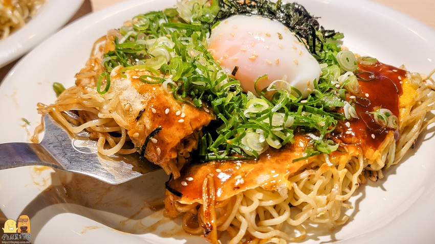 底部的黃麵條煎到酥脆,吃起來有點像廣東炒麵的口感,但又沒像廣東炒麵這麼的硬