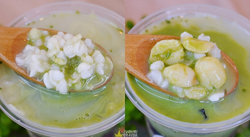 ▲薏仁要煮到這樣濃稠的口感真的不容易,粒粒分明又綿密的口感相當迷人!抹茶凍選用台灣的抹茶,帶有淡淡的清香,吃起來不會有人工香精味!就是超級好吃又養生啦!大力推薦🤘