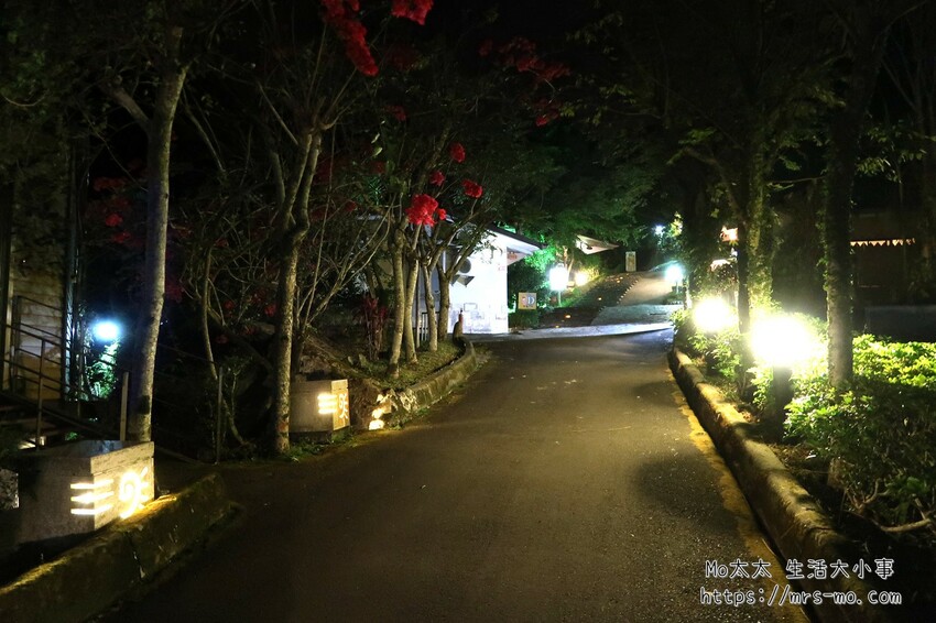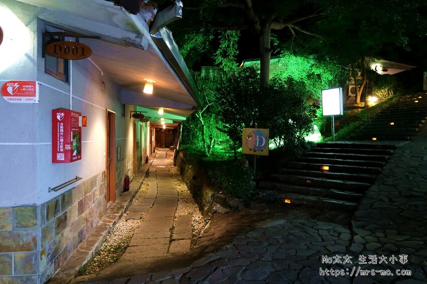 往房間的方向走過去會先爬一點坡,但有階梯及斜坡可以走,像Mo太太拉著29吋的行李箱就可以走斜坡比較輕鬆;園區內也有路燈,不用擔心暗摸摸的囉