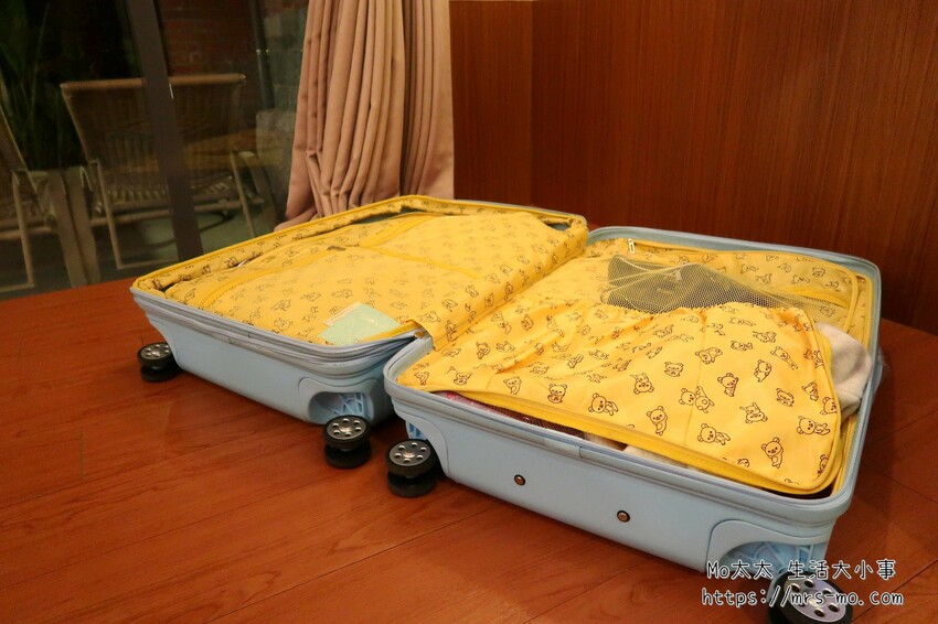 而且行李箱收納空間很夠,冬天的厚重衣物、一堆隨身物品都可以一箱裝好裝滿了,輪子也非常滑順,重點是老公可以拉著行李箱輕鬆多了。