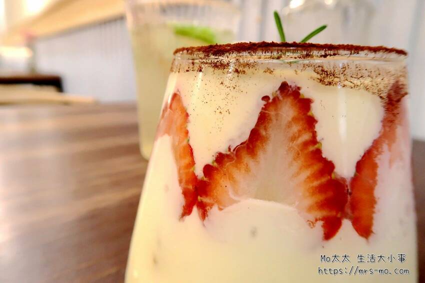 這趟用餐下來,最讓Mo太太驚艷的就是草莓提拉米蘇了,原本看到滿滿整杯的奶油,還擔心會太甜膩,結果手指餅乾與綿密的奶油搭配起來,一入口就能感受到的美好滋味,到現在回想起來又覺得肚子咕嚕咕嚕叫了呢(笑)