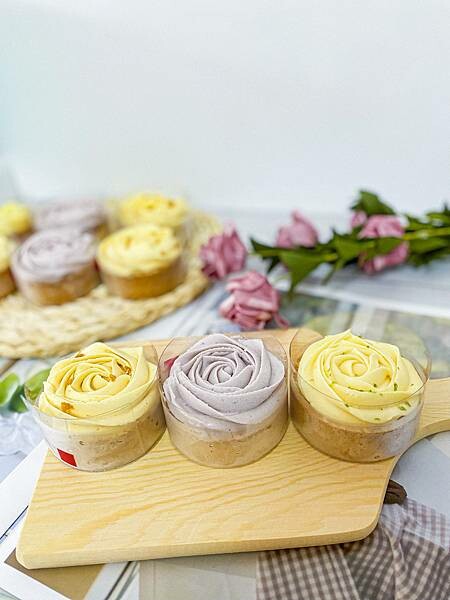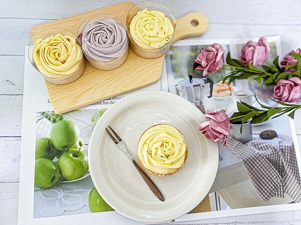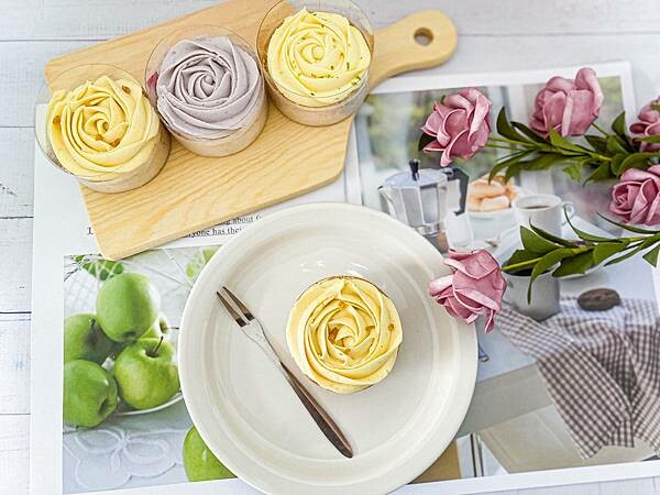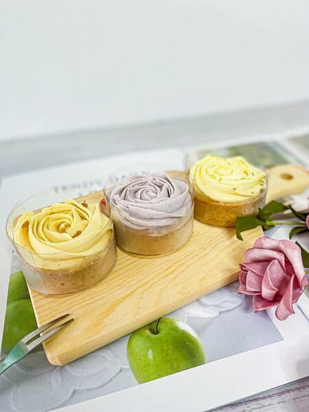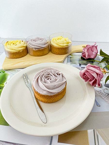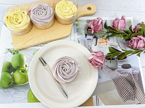 芋頭帶著美麗色澤~芋頭色的玫瑰花超美~🌹綿密的大甲芋頭餡與滑順的天然奶油,每口都很濃郁😋芋頭香氣超足夠整個很療芋!微甜很適合來杯花茶