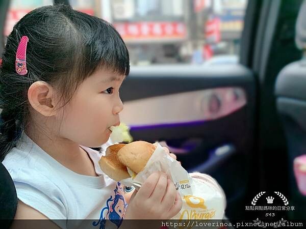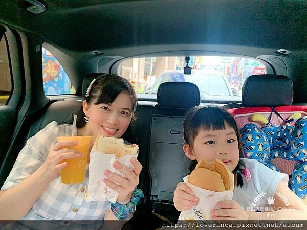 取餐後,聞到陣陣的香味,又正逢中午時刻,點點家已經耐不住食慾,我們 隨即找了路邊的停車位停下來就馬上來享用美味的Q Burger餐點!