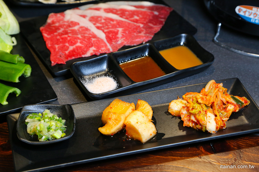 桌上除了有沾醬外還有各式的調味粉、日式清醬油,用來搭配燒肉或火鍋,隨心所欲。