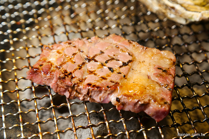 不僅是厚度很爽快,肉質的嫩度跟油脂與筋的分布比例上都很完美,五分熟搭海鹽真的剛剛好,而且炭火烤的就是不一樣,那香氣真的很足,簡直都可以媲美西餐廳單點的牛排了。