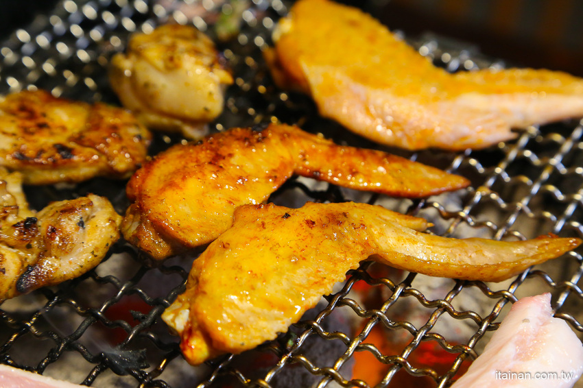店內的空間算大,桌間的距離也規畫得不錯,座位的椅子是仿大理石設計,除了質感好外長椅的設計坐起來更為舒適。採單獨的小火爐木炭直烤的方式,爐火上頭加裝的抽風機可以直接將油煙快速抽走,減少油煙味吸附在身上。